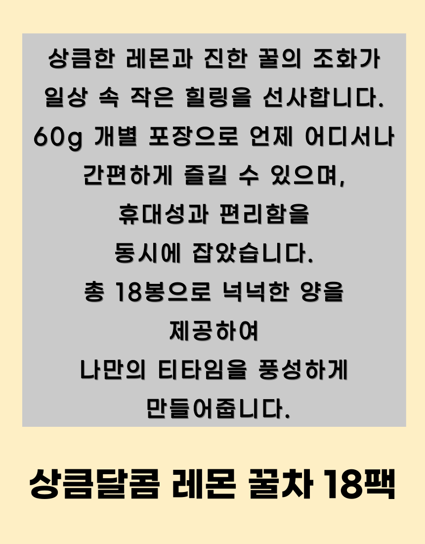 레몬차 레몬청 개별포장 실속형 액상 스틱꿀 큰컵용 레몬꿀차꿀차 60g(18포)
