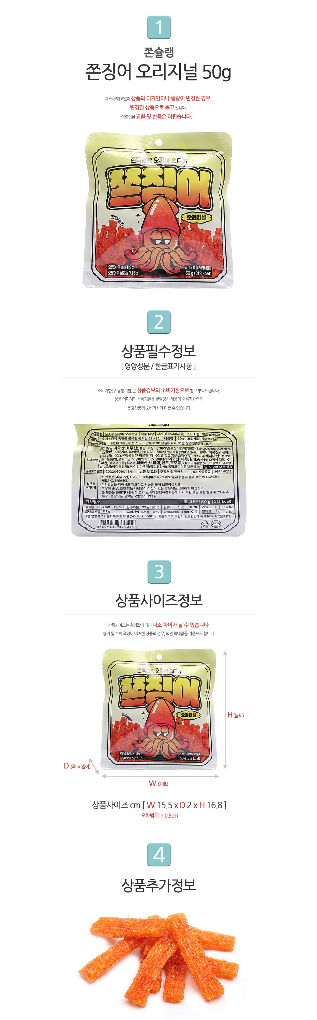 쫀슐랭 쫀징어 오리지널 50g (1묶음 12개입)
