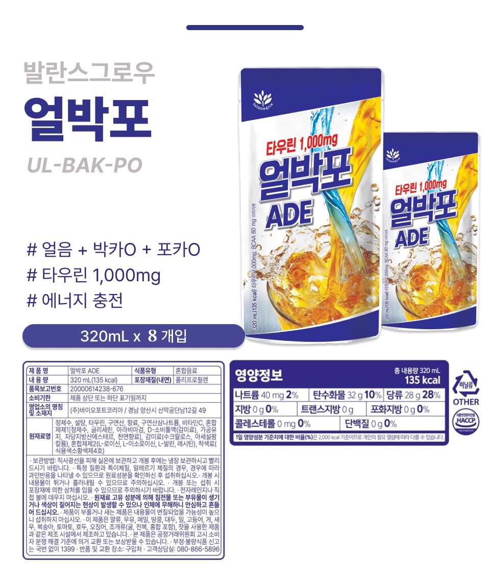 발란스그로우 얼박포320mlx8개입(1케이스)