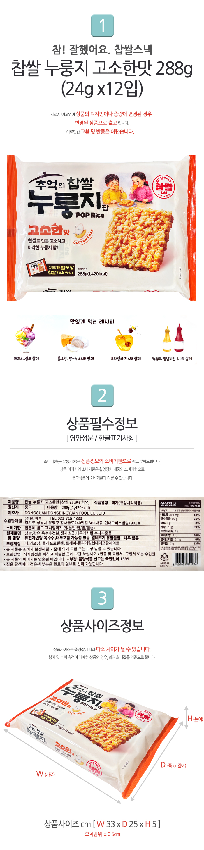 추억의 찹쌀 누룽지팝 고소한맛 288g(24g x12입)(1봉입)